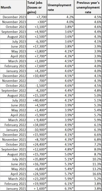 'December’s job growth was the strongest since June 2023 and marked five consecutive months of job growth, after revisions to November data. Despite strong job gains, the unemployment rate inched up from 4.0% to 4.2%,' said Employment Security Department (ESD) Chief Labor Economist Anneliese Vance-Sherman. 'The overall trend in 2023 has been the slowing of a still-strong labor market after the tumultuous ups and downs of COVID-19 economic recovery.'